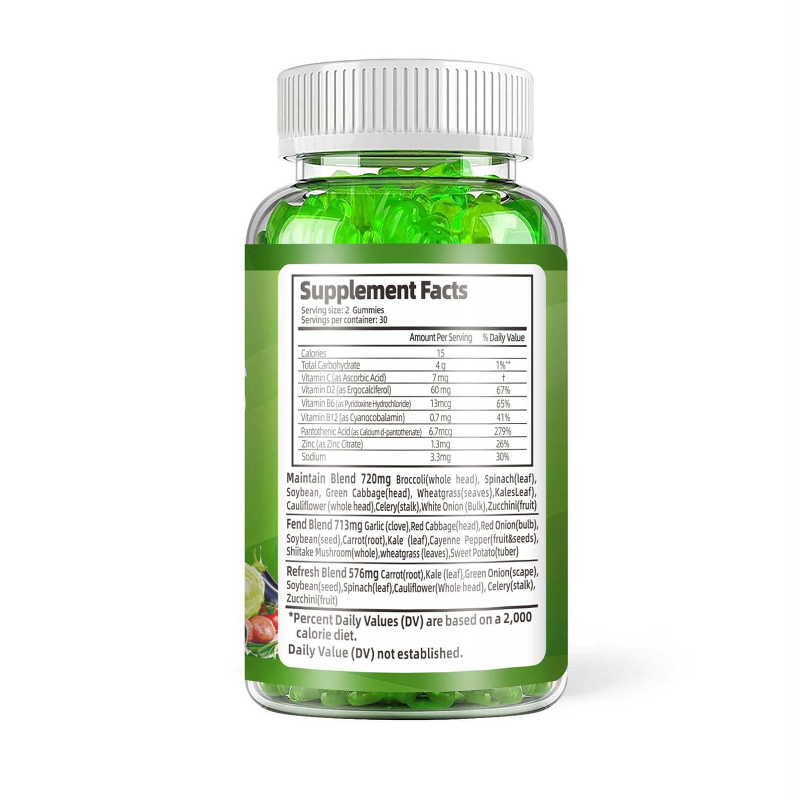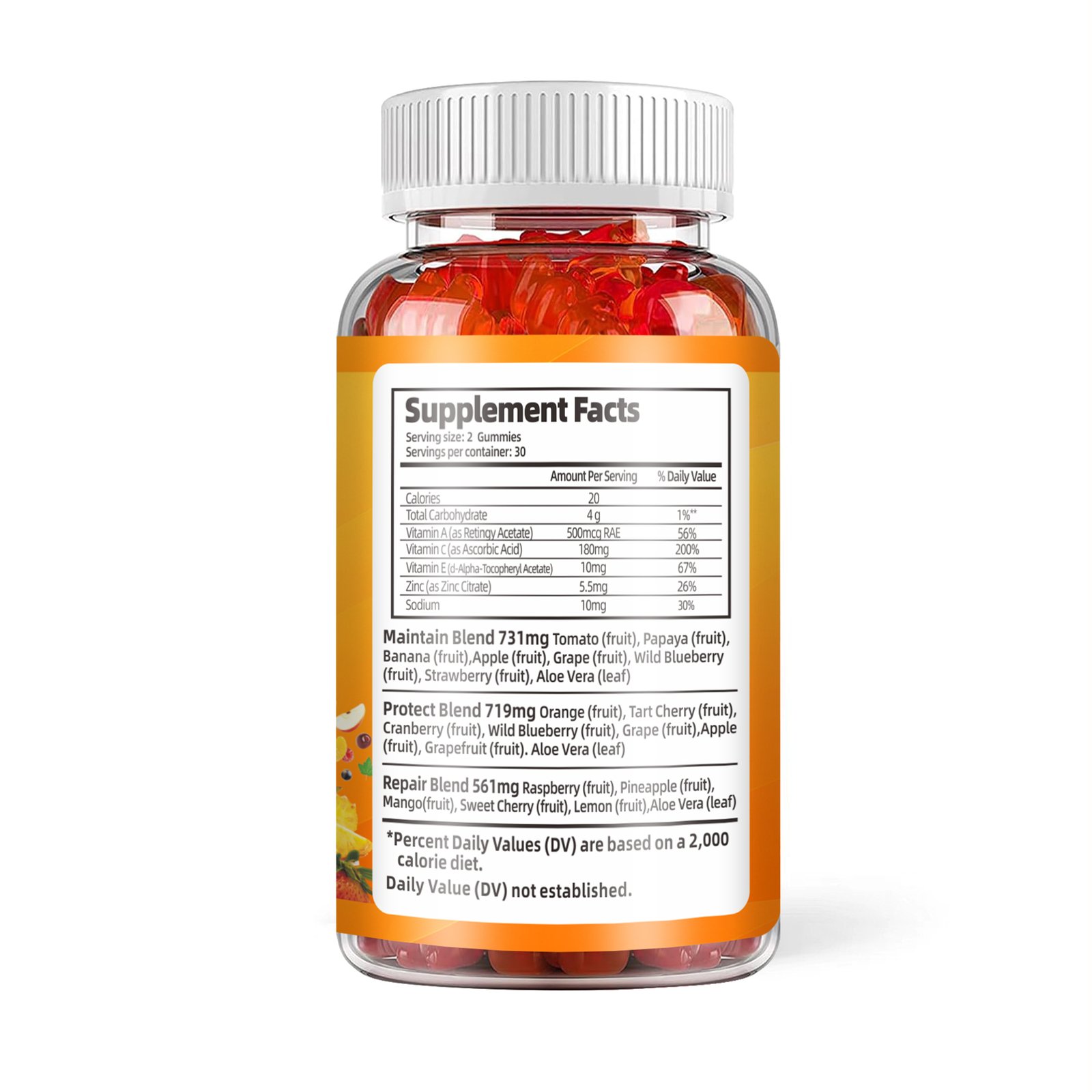 Each gummy is packed with extracts and essences from these wholesome fruits, ensuring you get a spectrum of vitamins, minerals, and antioxidants: